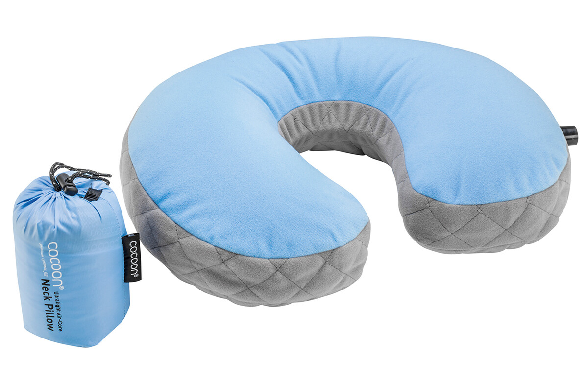 Bequeme, kompakt verpackbare Nackenstütze mit aufblasbarem Luftkern, synthetischer Füllung und weicher Mikrofaserhülle. Ideal auf Flugreisen, im Bus und in der Bahn.