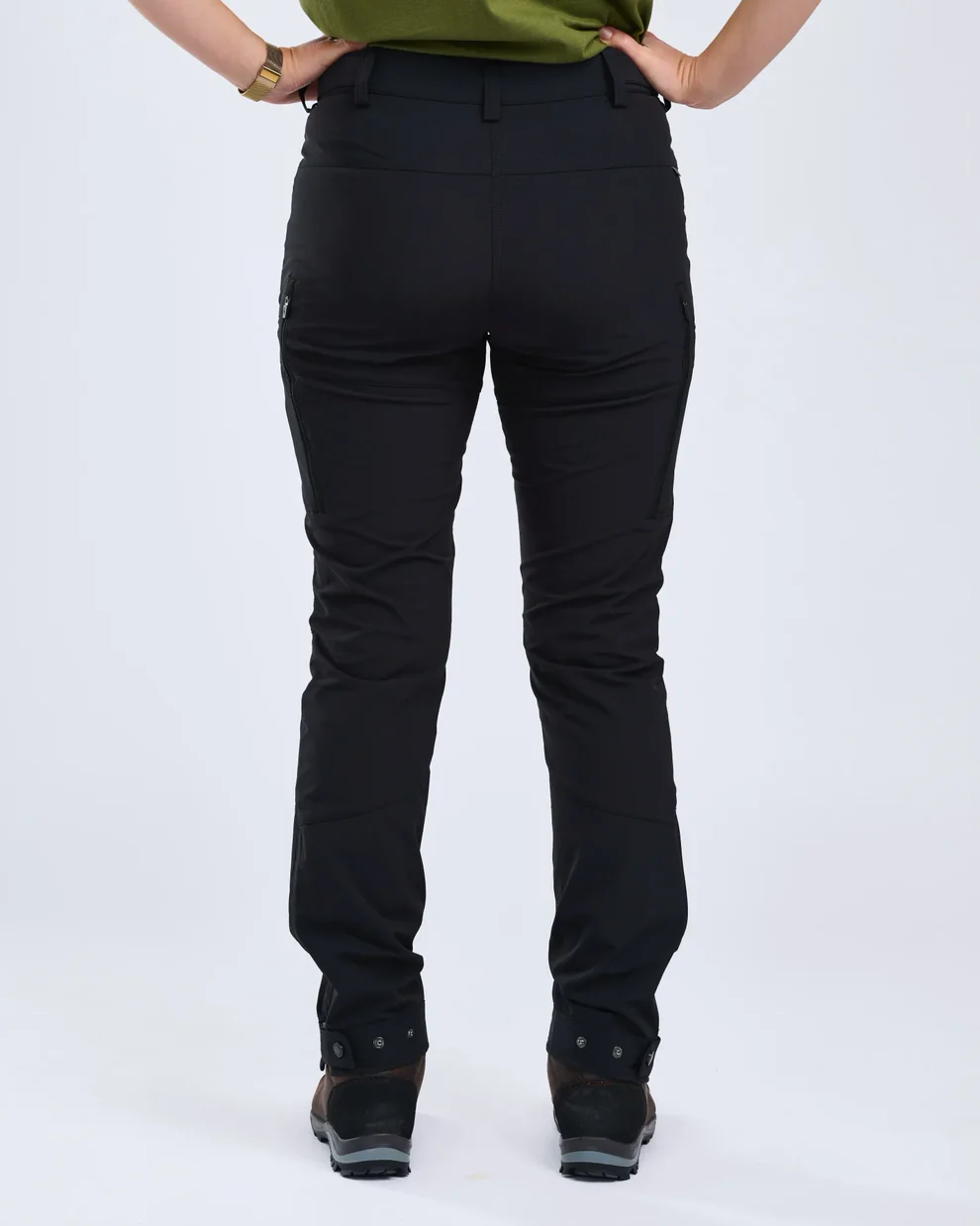 Reißverschluss an den Beinenden, Stiefelhaken, verstellbare Beinabschlüsse, verstellbarer Hüftbund, vorgeformte Knie
