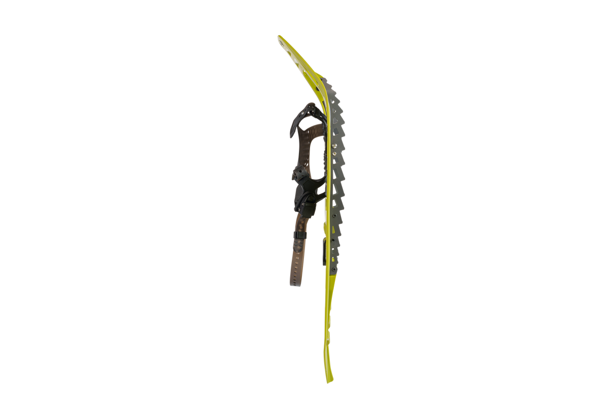 Der Helium Trail bietet höchsten Tragekomfort für angenehme Winterwanderungen. Dabei ist der Auftritt des Schneeschuhs durchaus robust: Der flexible Rahmen und die Zacken und Seitenschienen aus gehärtetem Stahl bilden ein stabiles und dennoch leichtes Paket.
