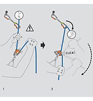 • zum Abseilen reicht ein leichter Druck auf das Gerät und mit der anderen Hand spannt man das freie Seilende