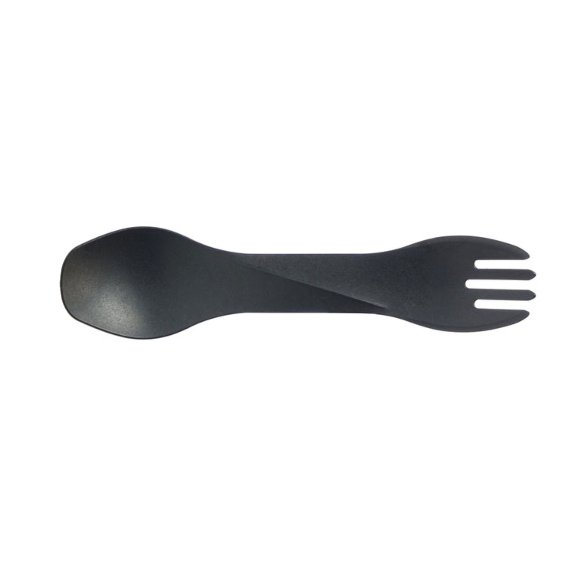 Hochfunktionelle und äußerst stabile Gabel-Löffel-Kombination. Beide Enden sind für die jeweilige Funktion optimal gestaltet und erfüllen hohe Ansprüche. Der Löffel hat weiche und mundgerechte Kanten. Die Gabel hat Spitzen, mit denen sich auch 'arbeiten' lässt. Auf eine Messerfunktion wurde bewusst verzichtet, um beim Essen keine Gefährdung des Mundbereichs herbeizuführen und ein scharfes Messer ohnehin zu den meisten Standardausrüstungen gehört. Eine 'Teil'-Funktion, z. B. für das Zerteilen von weichen Speisen wie Kartoffeln oder Spiegeleiern, bietet die Gabelseite an. Liegt sehr gut in der Hand.